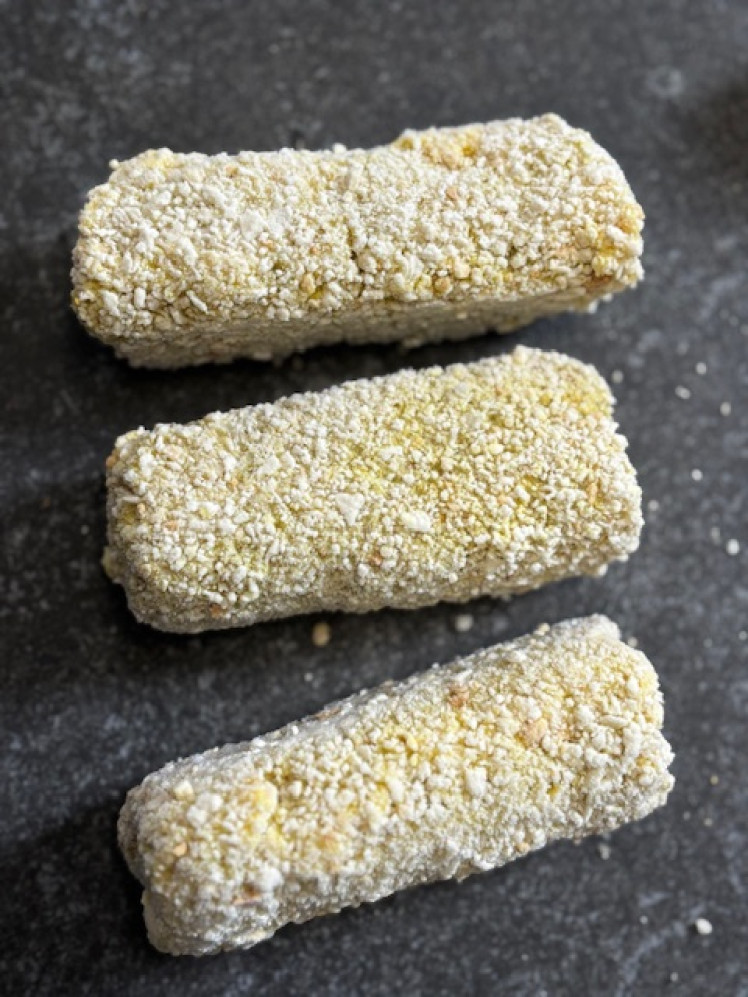 Paneerlaag gemaakt van biologisch brood(paneermeel).